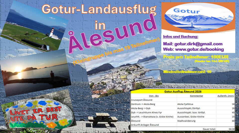 • Eine Stornierung ist bis eine Woche vor dem Ausflug kostenfrei moeglich. Ausnahme sind wetterbedingte Umroutungen des Schiffes. In diesem Fall wird der Ausflugspreis generell zurueckerstattet.